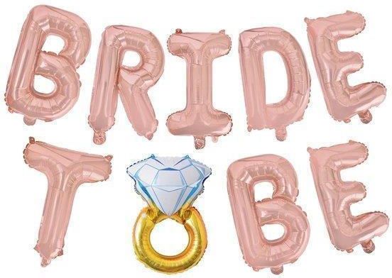 Napis Bride To Be z Pierścionkiem Na Wieczór Panieński Balony dekoracyjne tworzące napis Bride To Be są idealne na Wieczór Panieński. Balony są nieodłącznym elementem Wieczoru Panieńskiego, tworzą fantastyczną dekorację i nadają miejscu wyjątkowego charakteru. Zestaw zawiera: 8 balonów foliowych 45 cm golden rose tworzących napis Bride to be 1 balon foliowy w kształcie pierścionka 24cm x 45cm