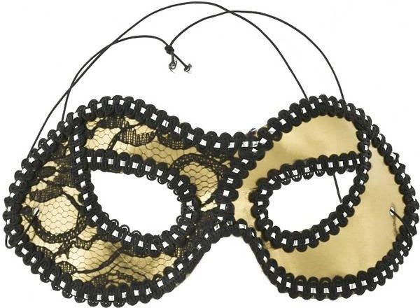 Maska karnawałowa z tyłu na gumeczkę, ozdobiona koronką. Maska może stanowić samodzielny element, albo być uzupełnieniem stroju na Halloween, bal karnawałowy, urodziny, wieczór panieński, czy kawalerski lub inną imprezę.