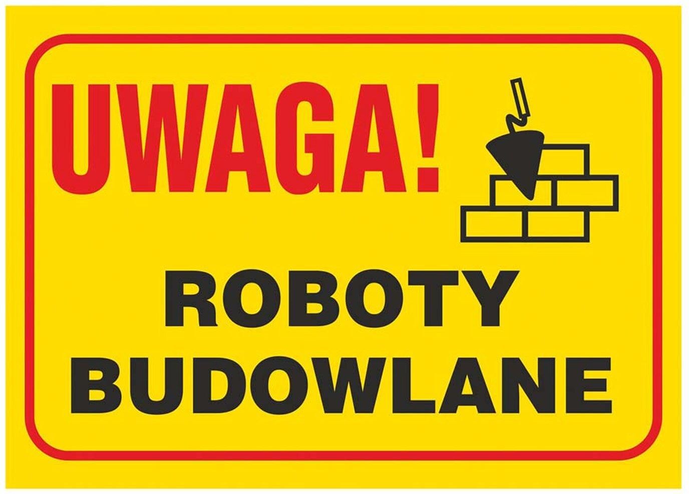 Znak "ROBOTY BUDOWLANE" firmy Brik. Jest to wykonany z wysokiej jakości materiału znak informacyjny, który przyda się wszędzie tam, gdzie zachodzi potrzeba udzielenia istotnych informacji w celu zapewnienia bezpieczeństwa. Znak charakteryzuje się trwałym i czytelnym nadrukiem, dzięki czemu jest doskonale widoczny i odporny na szkodliwe działanie czynników atmosferycznych.
