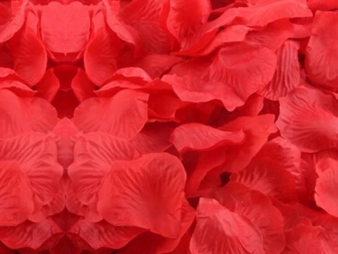 Płatki róż - czerwone, wykonane z materiału poliestrowego. Opakowanie 500 szt.