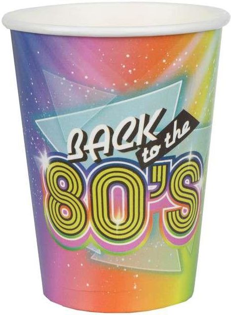 Kubeczki z napisem "Back to the 80s" w neonowym stylu. Nie może ich zabraknąć jeżeli planujesz zorganizować imprezę w stylu lat 80-tych. W komplecie znajduje się 10 sztuk o pojemności 250 mlKupujesz produkt z pierwszego zdjęcia. Kolejne zdjęcia mogą przedstawiać wizualizację innych produktów. jednorazowy,lata 70, 80, 90,papier,SANTEX,wielokolorowy
