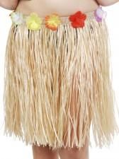 SPÓDNICA HAWAJSKA SŁOMKOWA Spódnica hawajska do tańca hula. Spódnica wykonana z imitacji rafii w kolorze słomkowym. Ozdobiona sztucznymi kwiatkami naokoło pasa. Mocowana na elastycznej gumce w pasie. Obwód w pasie - ok. 68 - 90 cm, długość - ok. 50 cm. Rozmiar uniwersalny. Idealny hawajski atrybut, …