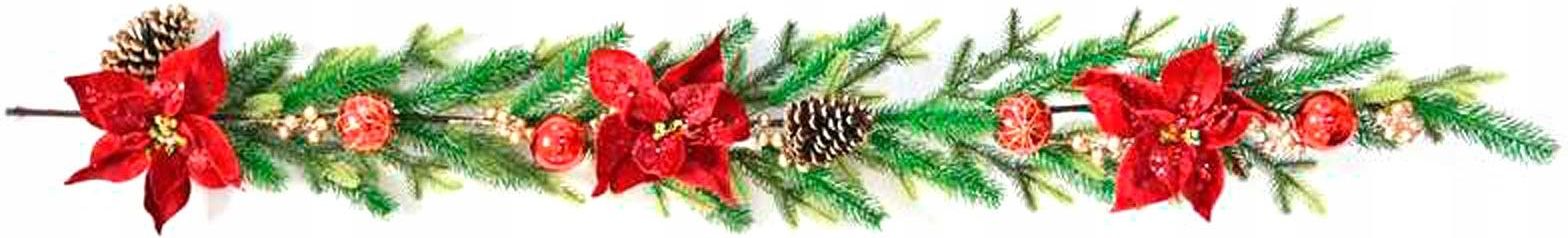 Girlanda bożonarodzeniowa z poinsecją - 150 cm Kod produktu: CV29154 Girlanda z gwiazdą betlejemską, idealna dekoracja na święta Bożego Narodzenia. Długość: 150 cm Szerokość: 25 cm Opakowanie: 1 szt.