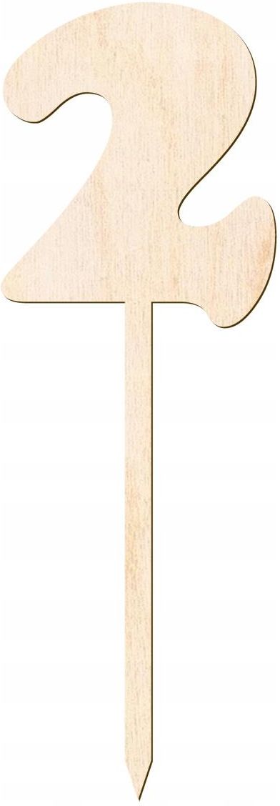 Toper z cyfrą 2 - dwa w kolorze naturalnym drewnianym, idealna dekoracja tortu na drugie urodziny. Materiał: sklejka 3 mm. Wysokość: 12 cm. Opakowanie: 1 szt.
