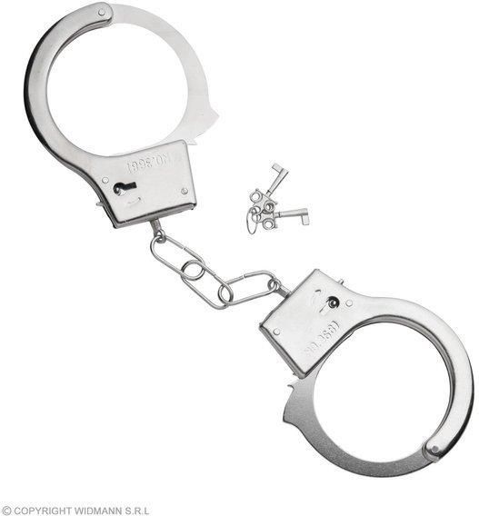 Metalowe kajdanki policyjne z dwoma kluczykami, idealny dodatek do stroju. Opakowanie: 1 szt.