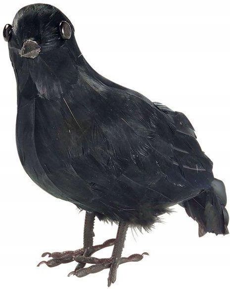 Dekoracja czarna wrona. Ptak wykonany z lekkiego tworzywa sztucznego, pokryty piórkami. Wrona ma doczepione czarne oczka. Produkt posiada bardzo realistyczny wygląd. Wielkość - ok. 27 cm. Idealna dekoracja na halloween lub do stroju pirata.