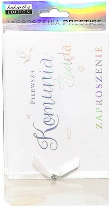 Zaproszenia na komunię świętą. W zestawie znajdują się dopasowane koperty. Opakowanie: 5 szt.