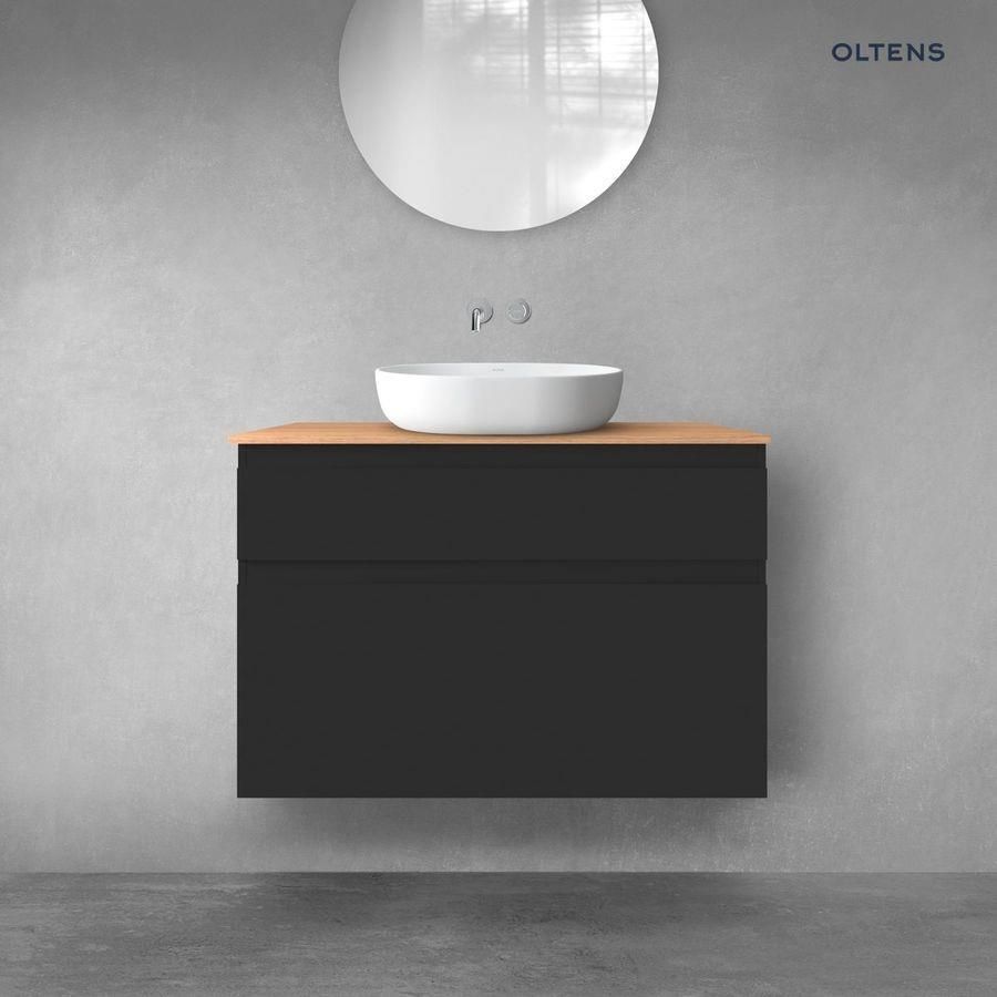 Zestaw Mebli Łazienkowych 100 Cm Z Blatem Czarny Mat/Dąb Vernal Oltens (68224300) Chojnice