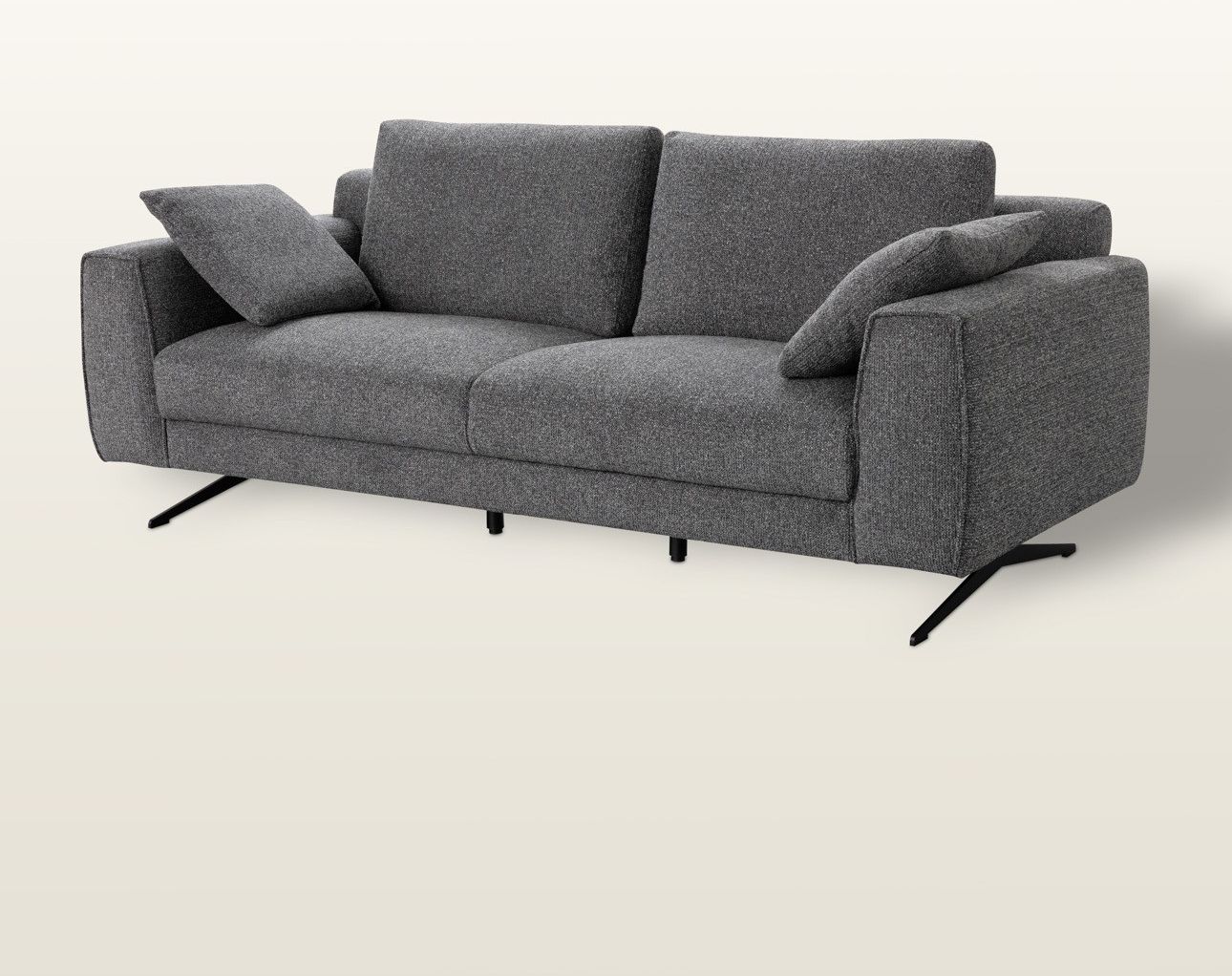Ciemnoszara sofa 3-osobowa o wysokiej odporności na ścieranie. Sofa Aarhus to minimalistyczna propozycja dla miłośników ponadczasowego designu. Jej prosta, geometryczna linia w połączeniu z głębokim, grafitowym odcieniem tapicerki tworzy efektowny, a zarazem uniwersalny mebel, który z łatwością wpisuje się w wiele aranżacji - od nowoczesnych, przez industrialne, aż po klasyczne. Trzy szerokie siedziska oferują wygodne miejsce do wypoczynku, wspólnych rozmów czy wieczornego relaksu. Wypełnienie z pianki i sprężyn kieszeniowych gwarantuje sprężyste, stabilne podparcie, a oparcie wypełnione wyłącznie pianką zapewnia wygodną, nieco sztywniejszą podporę dla pleców. Czarne, metalowe nogi dodają sofie lekkości i nowoczesnego charakteru. Ciemnoszara tapicerka doskonale łączy się z poduszkami w odcieniach ziemi. Sofa Aarhus dobrze wygląda w towarzystwie drewnianego stolika kawowego, miękkiego dywanu z geometrycznym wzorem, jak i bardziej surowych, industrialnych dekoracji. Wymiary: szer. 217 cm, gł. 92 cm, wys. 84 cm Kolor: ciemnoszary Materiał: tkanina 100% poliester, stelaż drewniano-metalowy, nogi metalowe Waga: 55 kg