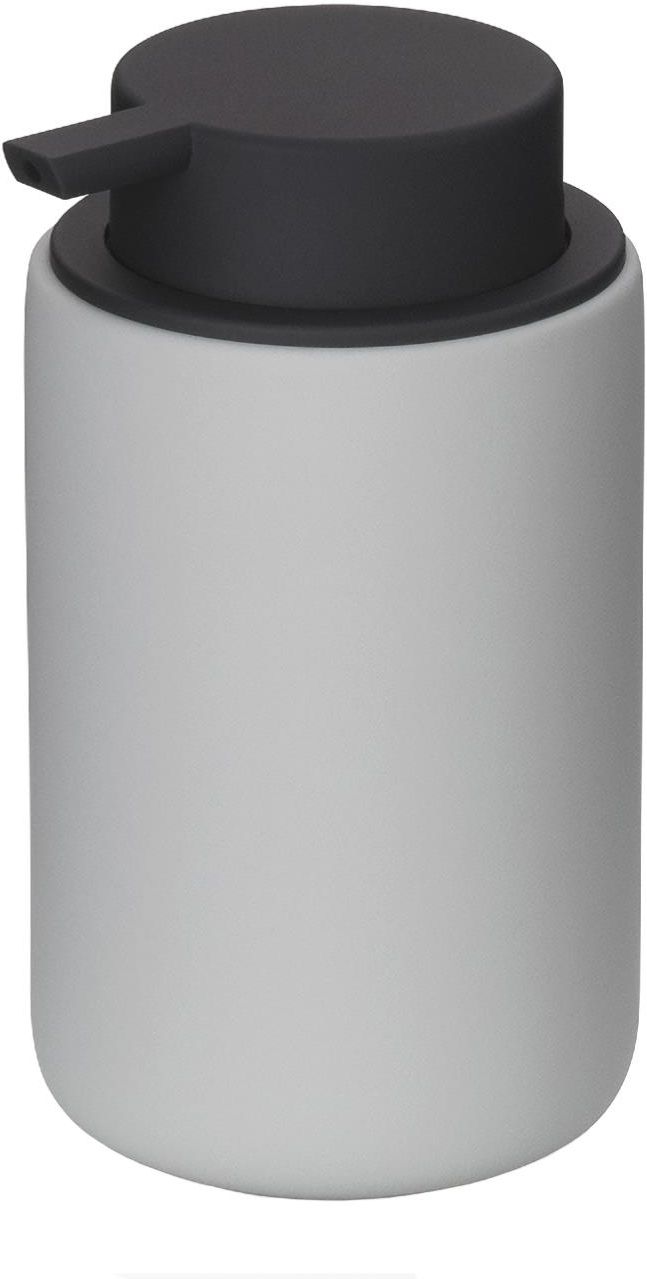 Ceramiczny dozownik do mydła w płynie. * dozownik w nordyckim, minimalistycznym stylu * gumowanie nie tylko nadaje ceramice matowy wygląd ale także sprawia, że dozownik jest przyjemny w dotyku * duży otwór ułatwia napełnianie Wymiary * pojemność: 0,3 l * średnica: 8 cm * wysokość: 14 cm Materiał * ceramika gumowana * tworzywo sztuczne