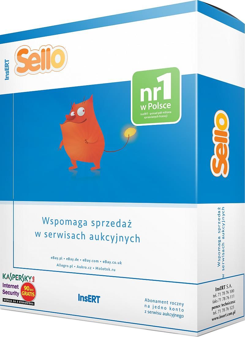 InsERT Sello - System sprzedaży w serwisach aukcyjnych, współpracujący z Subiektem GT oraz Subiektem nexo Sello to nowoczesny system stworzony z myślą o tych, którzy sprzedają towary w serwisach aukcyjnych i poszukują wszechstronnego, a jednocześnie prostego narzędzia do obsługi aukcji internetowych. Program komunikuje się z serwisem Allegro.pl wspierając sprzedawcę na wszystkich etapach sprzedaży. Sello umożliwia szybkie przygotowanie serii aukcji i śledzenie ich przebiegu. Pozwala lepiej kontrolować płatności od klientów. Pomaga przygotować paczki i stworzyć dla nich odpowiednie druki. Sello znacznie ułatwia kontakty z klientami dzięki kompleksowej obsłudze poczty elektronicznej. Umożliwia tworzenie serii listów za pomocą szablonów oraz automatyczne generowanie i wysyłanie wiadomości do kupujących (np. potwierdzenie otrzymania wpłaty, informacja o wysłaniu towaru itd.). Otrzymane e-maile zostają automatycznie podpięte do aukcji, transakcji, paczek i klientów. Sello współpracuje z popularnymi systemami sprzedaży: Subiektem GT i Subiektem nexo. Dzięki temu można sprzedawać towary z systemu sprzedaży na aukcjach internetowych, wystawiać faktury, paragony itp. Dodatkowo Sello zaktualizuje na aukcjach trwających stany towarowe, a w razie wyprzedania towaru zakończy aukcje. Wskaże także różnice w cenie aukcji i towaru i pomoże zaktualizować te ceny w serwisie aukcyjnym. Najważniejsze funkcje: obsługa wielu kont z serwisu Allegro.pl; możliwość pracy wielostanowiskowej; zaawansowany system tworzenia opisów i szablonów z wykorzystaniem tagów i modyfikatorów; obsługa pól własnych towaru, zewnętrznego systemu sprzedaży, podmiotu, liczników własnych; zbiorcze generowanie oraz aktualizacja ofert; ręczna i automatyczna aktualizacja stanów towaru w Allegro, kończenie oraz wznawianie ofert; zbiorcza możliwość zmiany cen towarów wystawionych w serwisie; operacje zbiorcze na ofertach, transakcjach, towarach; zbiorcza obsługa paczek poprzez listy wysyłkowe; obsługa kont pocztowych; automatyczne rozpoznawanie i przypisywane wiadomości do klienta, aukcji, transakcji lub paczki; możliwość zdefiniowania wiadomości automatycznych, generowanych po pewnych zdarzeniach w programie, np. rejestracja wpłaty od klienta czy wysłanie paczki; automatyczne wysyłanie i odbieranie danych; współpraca z Subiektem GT oraz Subiektem nexo (pobieranie informacji o towarach i ich stanach z systemu sprzedaży do Sello, wystawianie zamówień i dokumentów sprzedaży); przygotowywanie wydruków magazynowych zawierających listę towarów do danej paczki; reguły wiadomości pozwalające lepiej rozdzielać i segregować otrzymane wiadomości; ponowne wystawianie ofert archiwalnych; notatki dla transakcji, paczek i aukcji – możliwe do przenoszenia na wydruki oraz dokumenty w Subiekcie nexo/GT; miniaturki zdjęć przedmiotów na listach aukcji i towarów; wbudowana współpraca z serwisami kurierskimi poprzez: InPost ShipX, Wysyłam z Allegro; otwarty mechanizm eksportowania paczek umożliwiający eksport danych do dowolnego systemu kurierskiego; wbudowany edytor wydruków.
