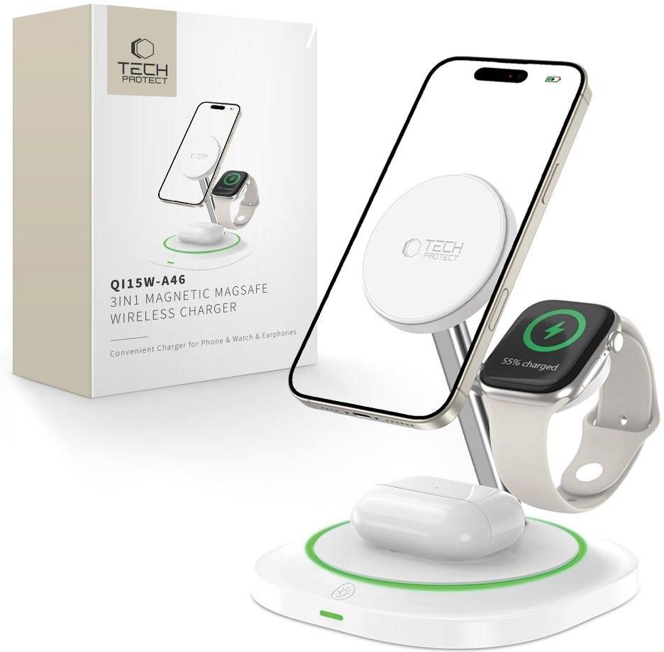 Tech-Protect Qi15W-A46 3In1 Magnetic Magsafe Wireless Charger White Chojnów
