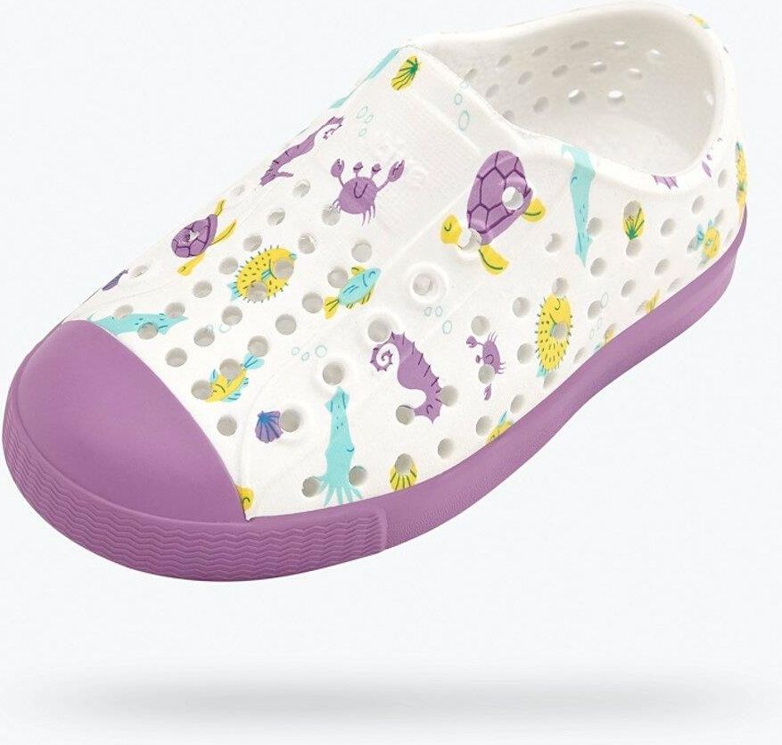 Buty miejskie dziecięce NATIVE JEFFERSON PRINT CHI Jefferson jest liderem lekkości i naszym bezkompromisowym gwiazdorem z pianki EVA. Jefferson zawiera wszystkie wspaniałe cechy, których można oczekiwać od butów Native. Jest odporny na wstrząsy, nieprzyjemne zapachy, można go prać ręcznie i jest dostępny w nieskończonej gamie kolorów. To cechy o których niektóre buty mogą tylko pomarzyć. Gumowa podeszwa i czubek buta Konstrukcja EVA formowana wtryskowo Wzorzysty nadruk
