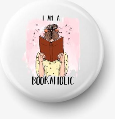Przypinka na agrafkę - button dla mola książkowego. Znaczek ozdobi torbę na książki, plecak czy kurtkę. Sprawdzi się też jako dekoracja-broszka na narzutce, którą można przykryć się podczas lektury w długie, jesienne wieczory.