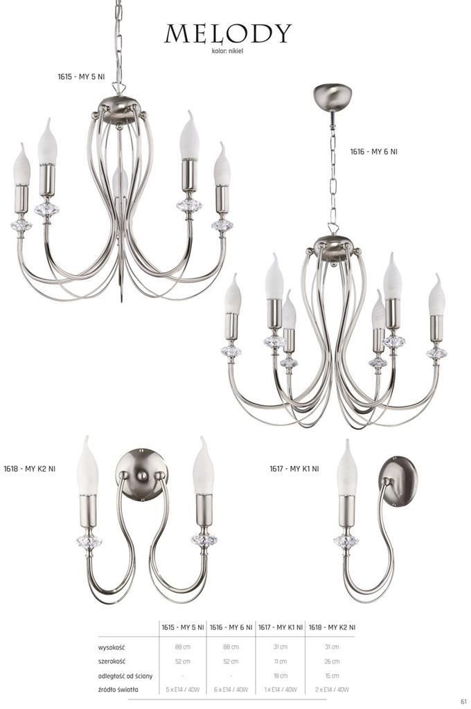Lampa Ścienna MELODY E14 Kinkiet Klasyczna Nikiel Jupiter Stylowa lampa MELODY wyróżnia się ciekawym klasycznym designem. Na uwagę zasługują zwłaszcza ozdobne kryształy, które świetnie uzupełniają lampę i dodają jej szyku. Odsłonięte źródło światła daje możliwość zamontowania ozdobnej żarówki np w …
