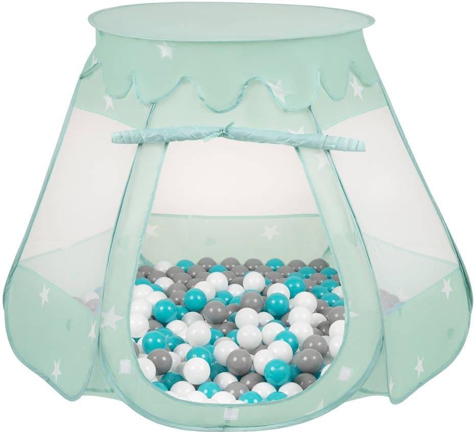 Kiddymoon Partners Namiot zamek NZ-100X z piłeczkami 6cm miętowy szary-biały-turkus (17208457) Choroszcz