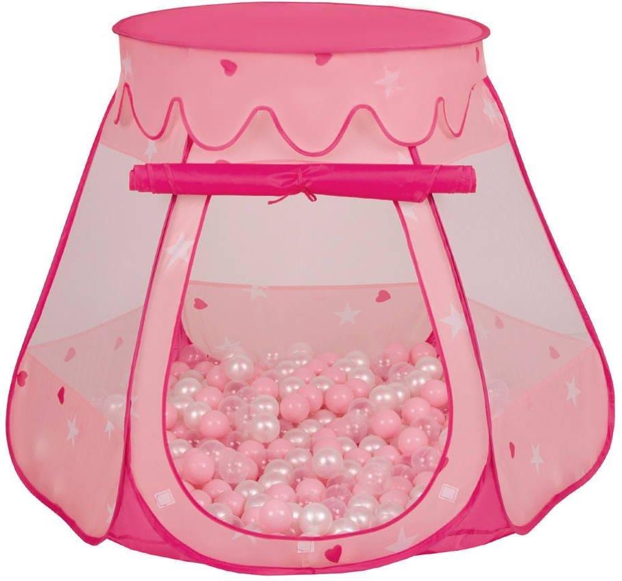 Kiddymoon Partners Namiot zamek NZ-100X z piłeczkami 6cm różowy pudrowy róż-perła-transparent (16684457) Choroszcz