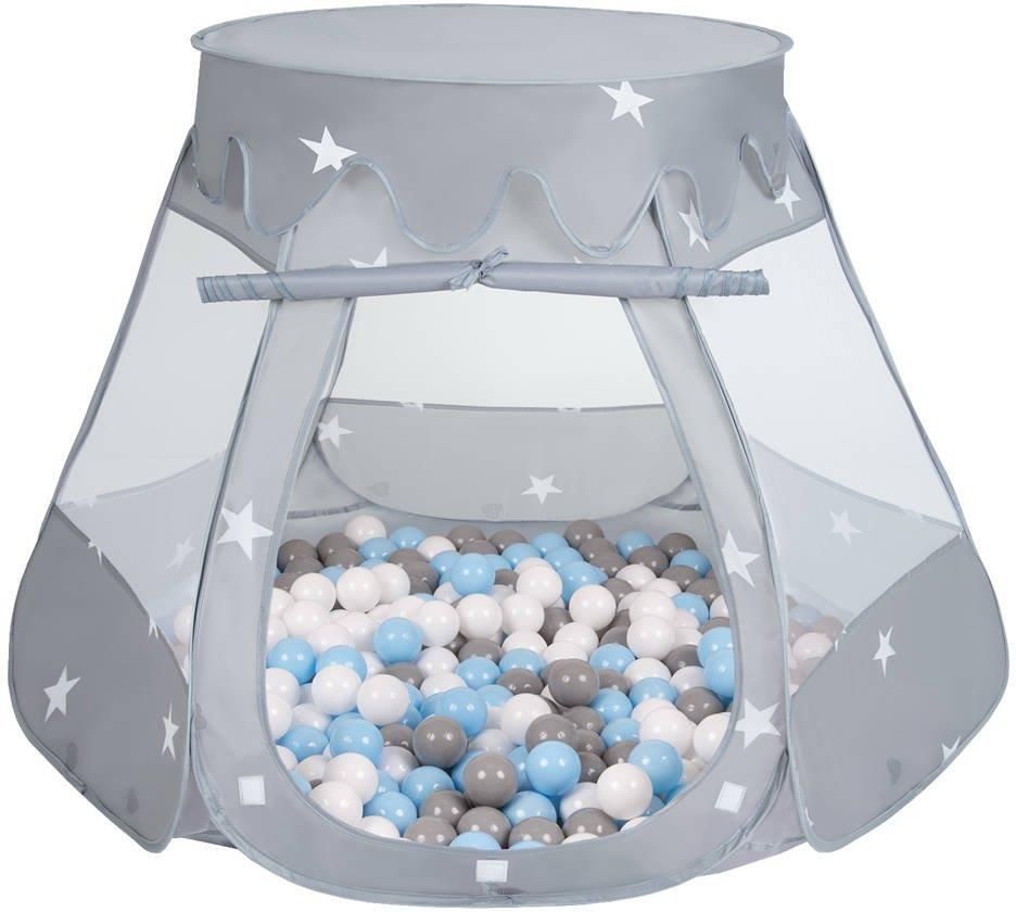 Kiddymoon Partners Namiot zamek NZ-100X z piłeczkami 6cm szary szary-biały-babyblue (17203457) Choroszcz