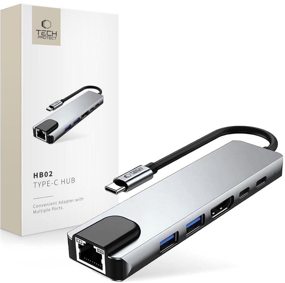Tech-Protect Hb02 Hub Adapter 6In1 Type-C + USB2.0 USB3.0 HDMI 4K 30Hz Rj45 Pd100W Space Grey Choroszcz