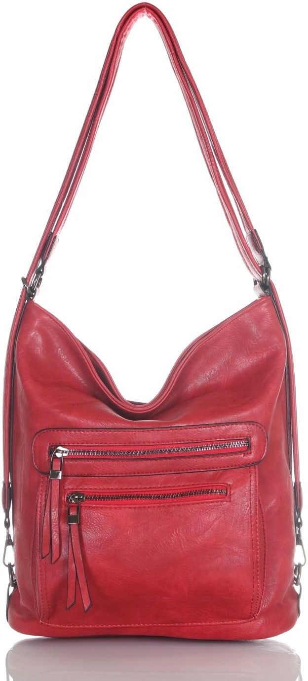 Efektowna torebka damska wykonana z najwyższej jakości skóry ekologicznej, wykończona mocną podszewką. Zastosowanie porządnych okuć i zamków gwarantuje długie i bezproblemowe działanie. 2W1 Torebka z funkcją plecaka! Torebkę można nosić standardowo na ramieniu na wygodnej rączce, lub na dwóch paskach jak klasyczny plecak. Sposób noszenia w formie plecaka zobacz w kolorze czarnym. Wnętrze dwukomorowe wnętrze duża kieszeń na suwak w przegrodzie mniejsza kieszonka na suwak dwie kieszonki wsuwane np. na telefon torba mieści format A4, ale dość ciasno Na zewnątrz dwie kieszonki na suwak z przodu praktyczna kieszonka na zamek z tyłu wygodna, długa rączka do noszenia na ramieniu, lub w formie plecaka Zalety plecak i torebka w jednym genialny, ponadczasowy design wykonania z dbałością o szczegóły piękne kolory najwyższa jakość materiałów praktyczne wnętrze z dużą ilością kieszonek pojemny model Wymiary wysokość: 32cm szerokość dna: 29cm głębokość dna: 12cm