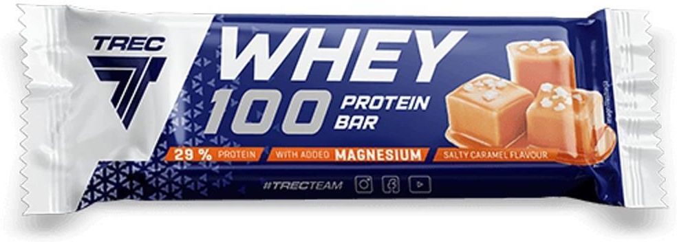 TREC Whey 100 Protein Bar — baton wysokobiałkowy, idealny dla osób aktywnych, trenowanych oraz tych, którzy chcą smacznej i wartościowej przekąski wspierającej regenerację i utrzymanie mięśni.