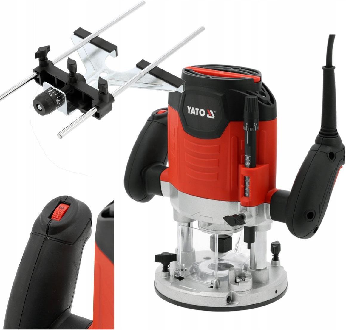 FREZARKA GÓRNOWRZECIONOWA 1400W (UCHWYT 6mm i 8mm) YATO YT-82385 Mocna frezarka YATO o trwałej konstrukcji przeznaczona do prac w warsztacie stolarskim i ciesielskim - kształtowania krawędzi, frezowania wpustów oraz złączy stolarskich. Służy do obróbki drewna i materiałów drewnopochodnych. Miękki start oraz stabilizacja prędkości sprawiają, że obsługa frezarki jest komfortowa i bezpieczna, zapewniając stałą kontrolę nad narzędziem i precyzyjny postęp prac. elektroniczna regulacja prędkości obrotowej w zależności od rodzaju obrabianego materiału i średnicy frezu głębokościomierz z pokrętłem mikrometrycznym umożliwia precyzyjne ustawianie głębokości frezowania, wskazując wartość w okienku obudowy umożliwia prowadnica do frezowania równoległego stabilizuje ruch narzędzia i utrzymuje idealną linię cięcia nawet na dłuższych odcinkach prowadnica do frezowania okręgów ułatwia przejścia, pozwalając uzyskać równe i powtarzalne krawędzie łuków i zaobleń przyłącze odciągu pyłu pozwala zachować czystość w miejscu pracy poprzez podpięcie odkurzacza przemysłowego Parametry Moc: 1400 W Obroty: 9000-28000 min?¹ Napięcie: 230-240 V a.c. Częstotliwość: 50 Hz Rozmiar uchwytu narzędziowego: 6 or 8 mm Skok zespołu frezowego: 55 mm Regulacja prędkości: tak Elektronicznie regulowana prędkość obrotowa: tak Miękki start: tak Długość przewodu: 3 m Klasa izolacji elektrycznej: II Stopień ochrony: IP20 Ciśnienie akustyczne: 91.0 ± 3.0 dB(A) Moc akustyczna: 99.0 ± 3.0 dB(A) Drgania: 4.23 ± 1.5 m/s² Masa: 4.77 kg Zawartość zestawu: frezarka, prowadnica x2, przyłącze odciągu pyłu, tuleja redukcyjna