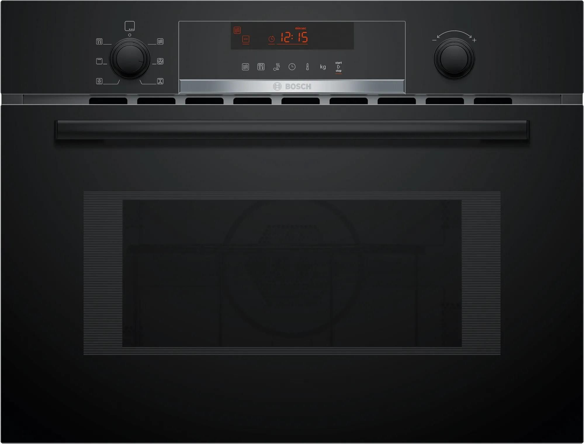 Kuchenka mikrofalowa CMA583MB0 Termoobieg: perfekcyjne rezultaty na jednym poziomie dzięki optymalnemu rozprowadzeniu powietrza. AutoPilot 15: perfekcyjnie przygotowane potrawy dzięki 15 programom automatycznym. Sterowanie z wyświetlaczem LCD z czerwonym podświetleniem: łatwe w obsłudze z bezpośrednim dostępem do dodatkowych funkcji, rekomendowanych temperatur i wskaźnika temperatury. Chowane porętła: ułatwiają utrzymanie w czystości panelu sterowania. Wnętrze ze stali szlachetnej: łatwe w utrzymaniu czystości wnętrze dzięki gładkiej powierzchni i braku ostrych krawędzi. EAN: 4242005440245 Gwarancja: gwarancja zewnętrzna 24 miesiące Kod dostawcy: CMA583MB0 Rodzaj: Zabudowa Moc: 900 W Sterowanie: elektroniczne Grill: tak Moc grilla: 1.75 kW Pojemność: 44 l Średnica talerza: 36 cm Funkcje (AGD) (mikrofale): Automatyczne podgrzewanie, Automatyczne programy gotowania, Rozmrażanie, Zabezpieczenie przed dziećmi, Zegar Funkcje specjalne: Programy automatyczne AutoPilot, 15 4 programy rozmrażania 3 programy grzania w trybie mikrofal 8 programów w trybie kombinowanym 5 stopni mocy mikrofal: 90 W, 180 W, 360 W, 600 W, 900 W Regulacja temperatury 40 °C - 230 °C5 stopni mocy mikrofal: 90 W, 180 W, 360 W, 600 W, 900 W Regulacja temperatury 40 °C - 230 °C Pizza Szybkie nagrzewanie Oświetlenie LED Wysokość: 45.4 cm Szerokość: 59.4 cm Głębokość: 57 cm Waga: 35.9 kg Termoobieg: tak Kierunek otwierania: dół Kolor: czarny Zasady akcji:  1. Kup urządzenie Bosch objętą promocją 2. Podziel się opinią na stronie sprzedawcy, w porównywarce cenowej lub na stronie bosch-home.pl. W treści opinii umieść hashtag #opiniamotywowanapromocją  3. Wypełnij formularz 4. Zyskaj zwrot na konto do 3000 zł * Zgłoszeń można dokonywać do dnia 31.12.2025 r.
