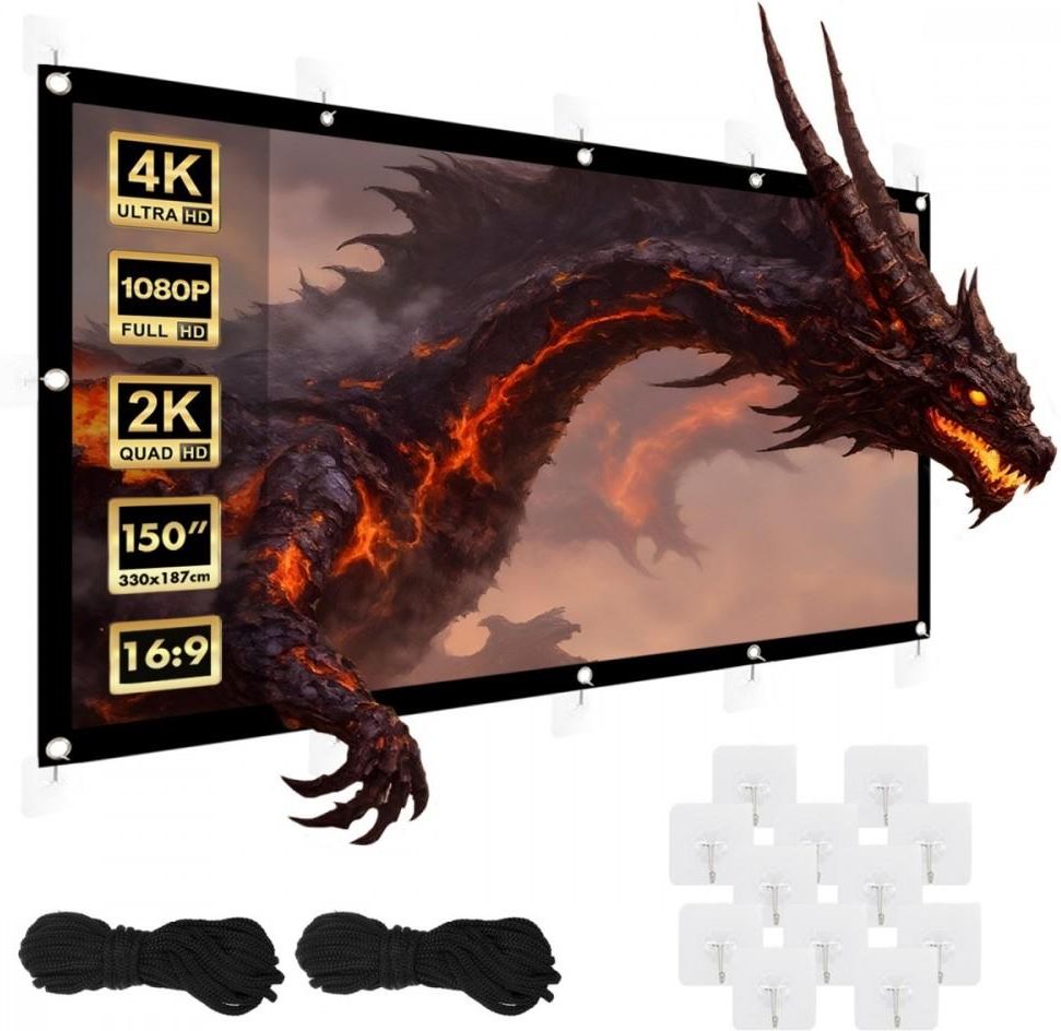 Ekran projekcyjny przenośny 150" 16:9 330x187cm MC-167 (90321) Łatwy montaż - w zestawie haczyki oraz linki Przekątna 150" (16:9) Szeroki kąt widzenia 179 stopni Idealnie nadaje się do kina domowego, prezentacji handlowych, szkoleń, itp. Czarne obramowanie o szerokości 25 mm Wykonany z elastycznego, grubego materiału poliestrowego Bardzo dobre odwzorowanie kolorów i wysoki kontrast wyświetlanego obrazu Ekran projekcyjny Maclean, 150", 330x187cm, obramowanie 25mm 16:9, haczyki do naciągu, MC-167 PRZEKĄTNA 150 CALI – PROFESJONALNY ROZMIAR NA DUŻE WYDARZENIA Ekran o imponującej przekątnej 150 cali (330x187 cm) to propozycja dla wymagających użytkowników. Stworzony z myślą o dużych salach, eventach, kinach domowych na najwyższym poziomie czy prezentacjach przed szerokim audytorium. Rozmiar ten oferuje nie tylko spektakularną widoczność, ale także doskonałe wrażenie immersji – nawet przy dużej liczbie widzów. Idealny tam, gdzie liczy się efekt „wow”. TRWAŁY I ELASTYCZNY MATERIAŁ – POLIESTER NAJWYŻSZEJ JAKOŚCI Wykonany z grubego, elastycznego materiału poliestrowego ekran MC-167 charakteryzuje się doskonałą wytrzymałością oraz odpornością na zagniecenia i odkształcenia. Gładka powierzchnia zapewnia równomierne rozproszenie światła, co przekłada się na czysty i ostry obraz. Ekran można złożyć i przechowywać bez obawy o trwałe zmarszczenia. FORMAT OBRAZU 16:9 – KINO W TWOIM DOMU Zgodność z popularnym formatem obrazu 16:9 sprawia, że ekran idealnie nadaje się do wyświetlania filmów, prezentacji multimedialnych, gier oraz transmisji sportowych. To uniwersalny wybór dla każdego, kto oczekuje obrazu w proporcjach stosowanych w kinach i nowoczesnych telewizorach. SZEROKI KĄT WIDZENIA – AŻ 179° Jednym z kluczowych atutów ekranu jest jego imponujący kąt widzenia 179°, co oznacza, że obraz pozostaje czytelny i wyraźny niemal z każdej pozycji w pomieszczeniu. To doskonałe rozwiązanie dla większej liczby widzów – wszyscy uczestnicy seansu będą mogli cieszyć się doskonałą jakością projekcji, niezależnie od miejsca, jakie zajmują. OBRAMOWANIE 25 mm – LEPSZY KONTRAST I WIZUALNE SKUPIENIE Eleganckie, czarne obramowanie o szerokości 25 mm, nie tylko dodaje mu profesjonalnego wyglądu, ale przede wszystkim poprawia kontrast wyświetlanego obrazu.Obramowanie pomaga także skupić wzrok widza na centralnym punkcie projekcji, zwiększając komfort oglądania. ŁATWY MONTAŻ – HACZYKI I LINKI W ZESTAWIE Ekran został zaprojektowany z myślą o maksymalnej wygodzie użytkowania. Montaż jest niezwykle prosty i szybki – wystarczy zawiesić ekran na dołączonych haczykach samoprzylepnych lub zamocować go za pomocą linek. Dzięki tej elastyczności instalacji, ekran idealnie sprawdzi się zarówno w domu, jak i w biurze, sali konferencyjnej, szkole czy nawet podczas plenerowych pokazów. Specyfikacja techniczna Producent: Maclean Model: MC-167 Kąt widzenia: 179° Rodzaj powierzchni: odbijający Materiał wykonania: poliester o dużej gęstości Współczynnik wzmocnienia: < 1.2 Wymiary zewnętrzne: 330x187 cm Przekątna: 150" Szerokość ramki: 25 mm Liczba otworów montażowych: 12 Długość linek: 5 m Liczba haczyków: 12 Format obrazu: 16:9 Maksymalna temperatura prania ręcznego: 30° Maksymalna temperatura prasowania: 120° Zestaw zawiera Ekran projekcyjny Maclean MC-167 150" Haczyki samoprzylepne - 12 sztuk Linki do zawieszenia - 2 x 5m Instrukcja Opakowanie kod produktu:90321 CE42TG