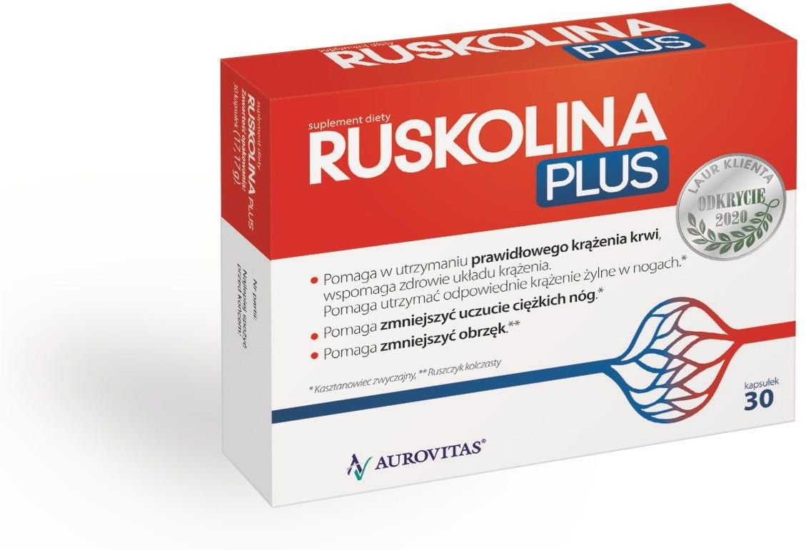Ruskolina Plus jest suplementem diety. Pomaga w utrzymaniu prawidłowego krążenia krwi, zmniejsza uczucie ciężkości nóg