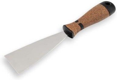 Szpachla marki Stalco o szerokości: 100 mm. Ergonomiczna rękojeść pokryta korkiem naturalnym. Blat ze stali nierdzewnej hartowanej, szlifowany grubościowo.