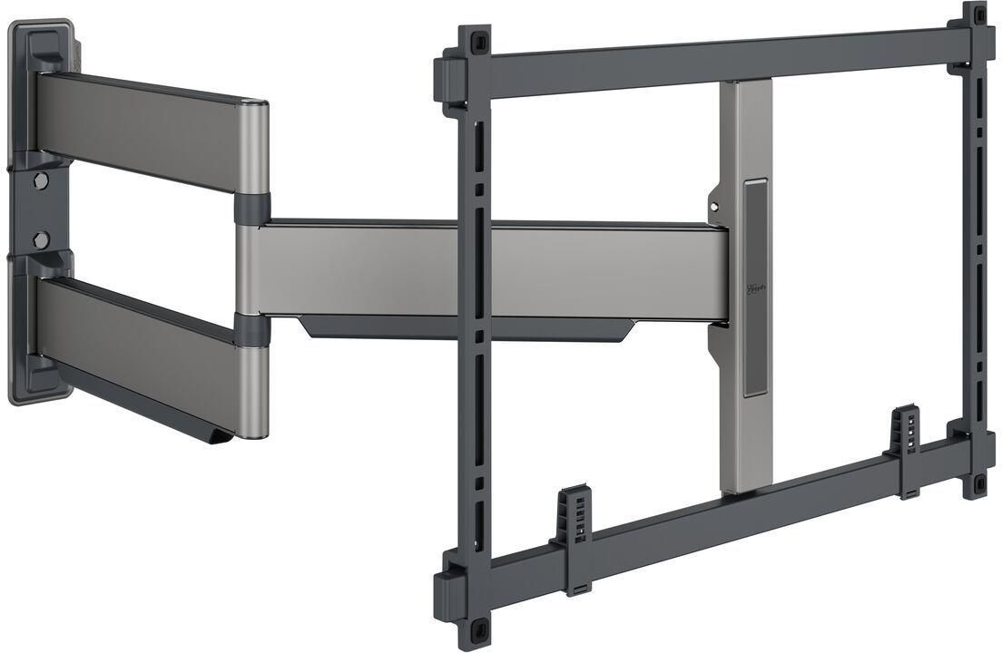 Uchwyt ścienny do telewizora ELITE Full-Motion+ został zaprojektowany specjalnie z myślą o dużych telewizorach, idealnych do telewizorów OLED lub QLED. Uchwyt ścienny do telewizora jest bardzo cienki, bardzo wytrzymały i można go obracać o 180°, umożliwiając optymalne korzystanie z telewizora pod dowolnym kątem. Ten uchwyt ścienny do telewizora jest odpowiedni dla telewizorów o przekątnej od 55 do 100 cali i wadze do 55 kg. Telewizor jest zamontowany zaledwie 4 cm od ściany. Kluczowe zalety: Ultra cienki i wytrzymały – Tylko 4 cm od ściany, idealny do dużych telewizorów OLED/QLED Płynny ruch OneFinger™ – dzięki powlekanym łożyskom i precyzyjnym stalowym wałkom Idealnie wypoziomowana instalacja – dołączona poziomica Poziomowanie 2D: Utrzymuj telewizor zawsze w poziomie – Precyzyjne poziomowanie po instalacji w poziomie i w pionie) Łatki ochronne na telewizor – Chroń tył telewizora za pomocą miękkich łatek ochronnych.