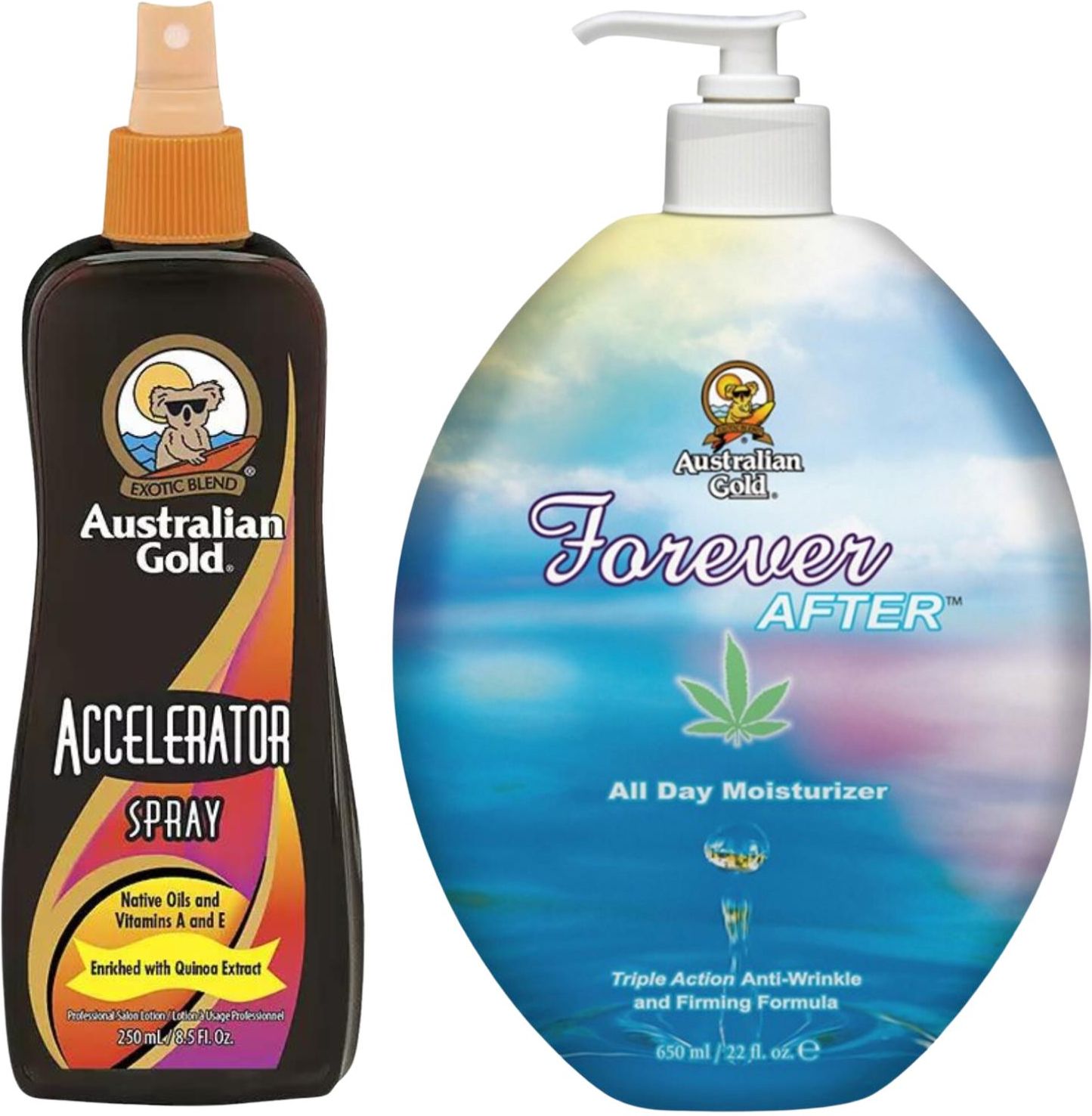 Australian Gold Accelerator W Spray + Forever After Po OpalaniuAustralian Gold Accelerator W Spray Niezrównany balsam podstawowy o światowej renomie! Znakomita formuła opalająca, m.in. z witaminami A i E, naturalnymi ekstraktami roślinnymi, Biosine Complex® i kompleksem nawilżającym …