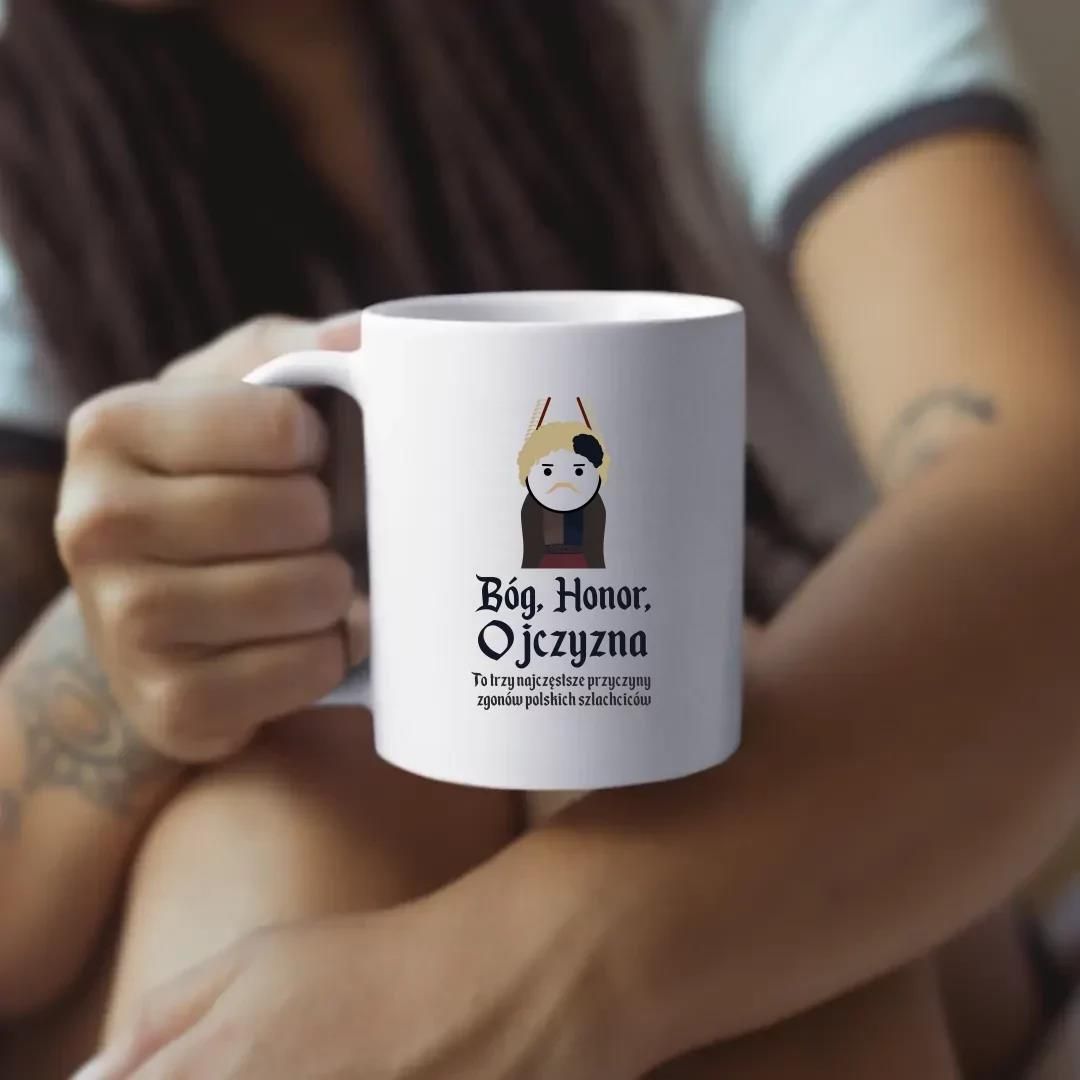 Bóg, honor, ojczyzna - to trzy najczęstsze przyczyny zgonów polskich szlachciców - kubek na prezent Chorzów