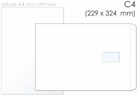 Bong Koperta Uniwersalna C4 Sk Kol. Biały Papier 229x324Mm 80G Okno Prawe 55 90Mm Foliowana 50szt. 2262-50 Chorzów