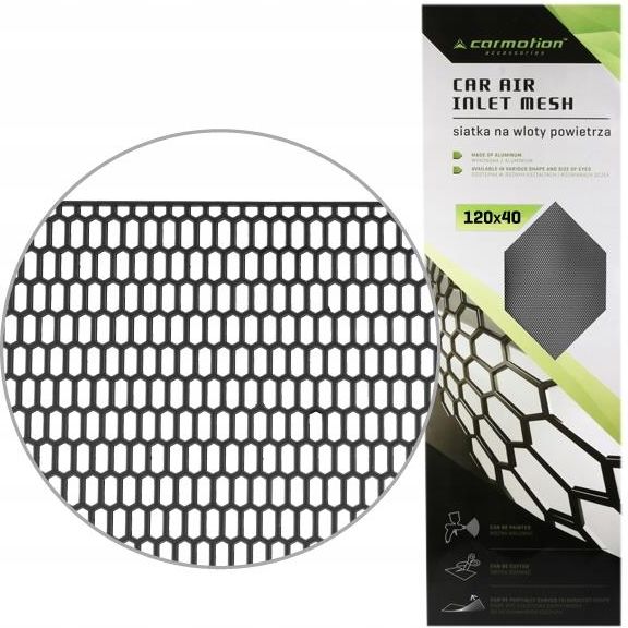 SIATKA MASKUJĄCA Z ALUMINIUM, OCZKO 2X4 MM, PLASTER MIODU, ARKUSZ 100X33 CM, CZARNA Siatka tuningowa wykonana z Aluminium, dzięki swojej sztywności daje możliwość precyzyjnego formowania. Czarna lakierowana proszkowo siatka aluminiowa o wymiarach: 100cm x 33cm Uniwersalna siatka do zabudowy zderzaków, wlotów powietrza, atrap itp. Z wysokogatunkowego Aluminium, dzięki czemu jest sztywna, a zarazem bardzo dobrze się formuje Siatka wykonana jest z jednolitej blachy Aluminium. w trakcie jej produkcji nie powstaje odpad, właściwości Mechaniczne są dużo lepsze od tradycyjnych siatek plecionych czy zgrzewanych SPECYFIKACJA Wymiary: 100x33cm Kolor: czarny