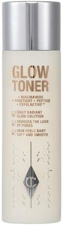 Tonik zwężający pory Glow Toner od Charlotte Tilbury — Twój sekret promiennego blasku! Ten cudowny eliksir, inspirowany rozjaśniającym i zwężającym pory działaniem toniku kwasowego + nawilżającej esencji, delikatnie odświeża i przygotowuje skórę do dalszych etapów pielęgnacji cery + zwiększa jej skuteczność. Testy konsumenckie wykazały, że: 97% zauważa, że skóra wygląda na gładszą i jest przyjemniejsza w dotyku* 96% uważa, że skóra jest cudownie miękka* 93% dostrzega, że skóra wygląda promiennie* * Testy przeprowadzone z udziałem 100 osób w ciągu 4 tygodni