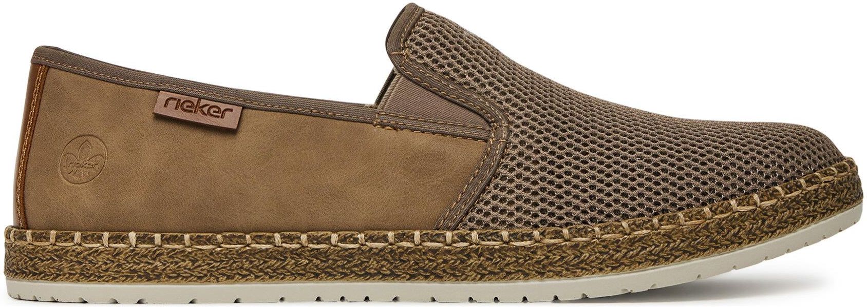 Espadryle marki Rieker to idealna propozycja dla mężczyzn ceniących wygodę i styl na co dzień. Ciemnobeżowy kolor świetnie komponuje się z różnorodnymi letnimi stylizacjami, dodając im subtelnej elegancji. Wykonane z włókienniczego materiału, zapewniają przewiewność i komfort nawet podczas długich spacerów. Płaska podeszwa sprawia, że są wyjątkowo wygodne i stabilne, a zastosowana technologia Rieker Antistress gwarantuje niezrównaną amortyzację i wsparcie dla Twoich stóp. Espadryle Rieker to obuwie, które sprosta oczekiwaniom nowoczesnego mężczyzny, łącząc casualowy styl z funkcjonalnością. Idealne na co dzień, oferują komfort i modny wygląd. Od ponad stu lat marka Rieker oferuje niezwykle komfortowe i trwałe obuwie, które powstaje z myślą o zdrowiu stóp. Dzięki wieloletniemu doświadczeniu w produkcji obuwia, ta niemiecka marka doskonale potrafi łączyć wygodę ze stylem, dlatego w ofercie znajdziesz buty w modnych, oryginalnych fasonach, które każdemu przypadną do gustu. Buty Rieker tworzone są z materiałów wysokiej jakości, przez co odznaczają się wyjątkową elastycznością i trwałością, ale też lekkością. Ponadto w obuwiu stosuje się szerszą formę zapewniającą odpowiednią stabilizację stopy, specjalne podeszwy absorbujące wstrząsy oraz odciążające stawy i kręgosłup, a także wyjmowane wkładki z pianki Memory Foam, która idealnie dopasowuje się do kształtu stóp. To doskonałe produkty dla tych, którzy ponad wszystko cenią sobie komfort. Przekonaj się!