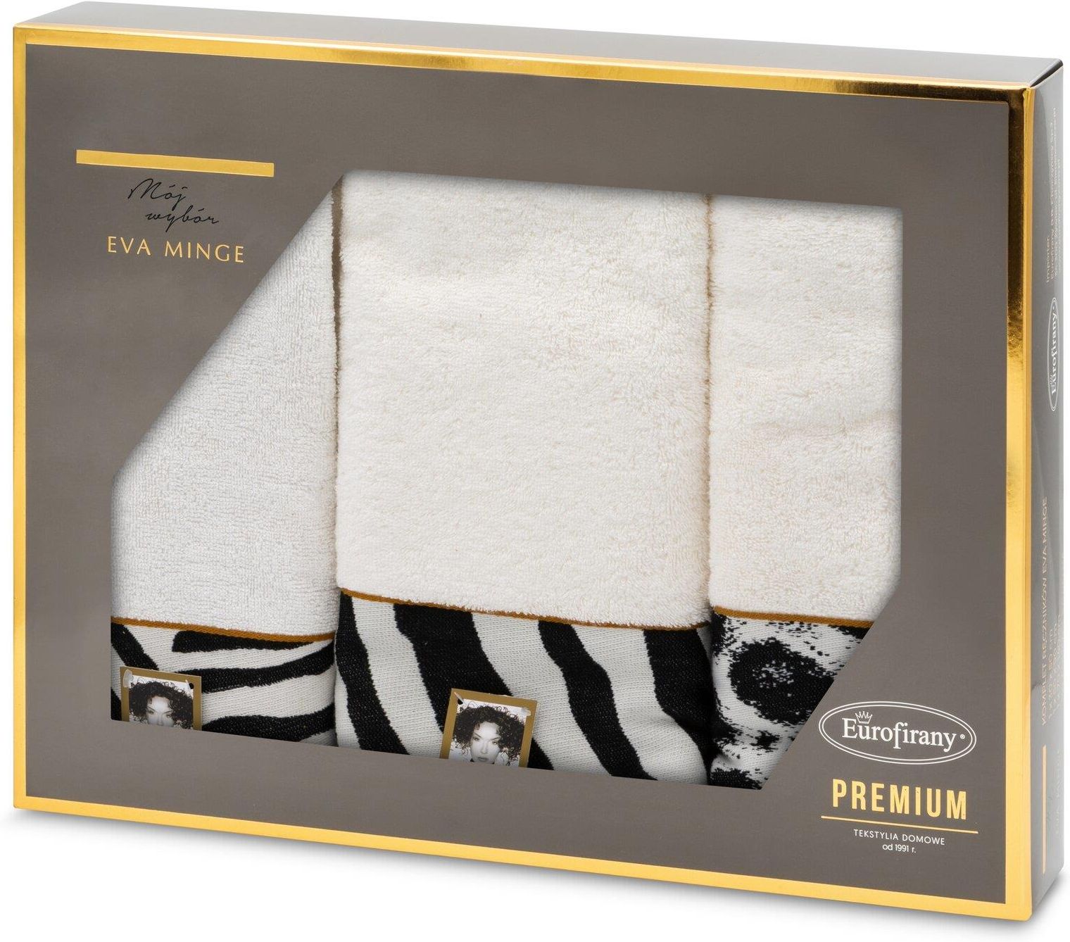 Eurofirany Komplet Ręczników Eva 22 Eva Minge Kremowe Z Drukowaną Bordiurą Z Wzorem Zwierzęcym Panterki (EF462068) Chorzów