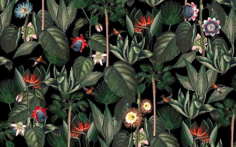 Graham&Brown Fototapeta Bujne Liście I Kwiaty Na Czarnym Tle Chorzów