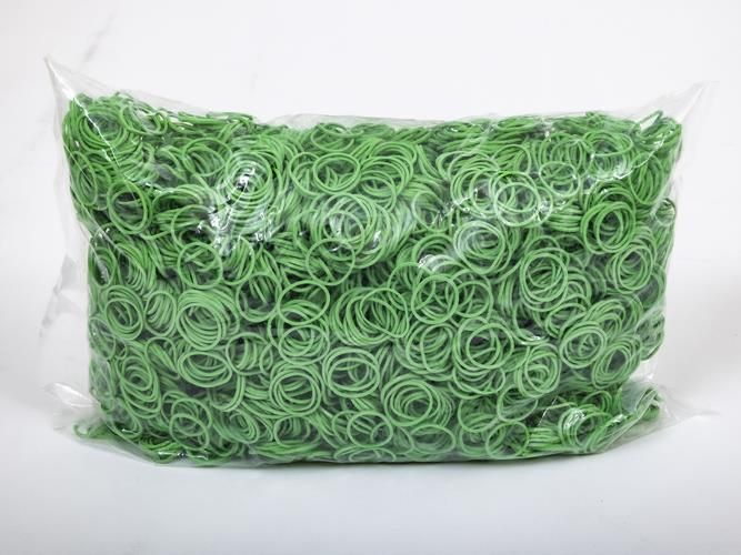 1 kg opakowanie gumek recepturek w kolorze zielonym wykonanych z kauczuku. Gumki o średnicy 20mm i przekroju 1.2/1.2.