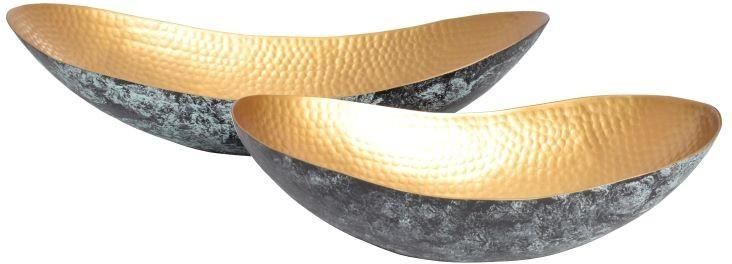 ZESTAW MIS ABSTRACT ORIENT ZŁOTE Z PATYNĄ - 2szt. Misy ABSTRACT ORIENT to znakomity dodatek do każdego pomieszczenia, który sprawdzi się idealnie we wnętrzach w stylu nowoczesnym czy klasycznym, gdzie dzięki swojej formie ożywi przestrzeń i doda jej charakteru. Misa została wykonana ze stopu aluminium, a jej ciekawa forma i kształt nadają jej niesamowitego wyglądu i charakteru. Powierzchnia misy wytwarzana jest w złożonym procesie chemicznym, który nadaje każdemu wazonowi niepowtarzalną patynę. Głównym atutem misy są jej wymiary, dzięki którym będzie ona idealnym miejscem na wyeksponowanie różnego rodzaju dekoracji czy drobnych przedmiotów. Misy ABSTRACT ORIENT sprawdzą się rewelacyjnie w każdym pomieszczeniu, gdzie staną się nie tylko pięknym dodatkiem, ale także funkcjonalnym elementem pozwalającym na prezentowanie kwiatów czy innych dekoracji. W serii ABSTRACT ORIENT występują także inne dekoracje - patrz produkty powiązane. Produkt jest wykonany z surowców naturalnych, przez co może różnić się od prezentowanych zdjęć. Wszystkie przetarcia, szczeliny oraz nierówności są zamierzone. Każdy produkt jest przez to unikalny i oryginalny. Invicta Interior to niezawodny dostawca ekskluzywnych designerskich mebli i akcesoriów domowych. Jest to dynamiczna i doświadczona firma z wieloletnimi międzynarodowymi kontaktami i stale poszukującą nowych produktów i innowacyjnych pomysłów. Dojrzała ogólna koncepcja firmy pozwala zaoferować klientom duży wybór nowoczesnych i klasycznych mebli o wyjątkowej jakości w rozsądnych cenach. Invicta Interior monitoruje wszystkie aktualne trendy w branży meblowej, dlatego klienci zawsze otrzymują najnowsze i najwyższej jakości designerskie meble.