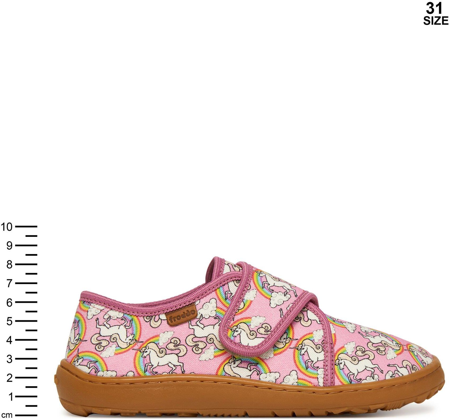 Kapcie Froddo G1700421-4 jednorożec Rozmiar 31 Kapcie barefoot Froddo G1700421-4 łączą w sobie funkcjonalność i wygodę. Praktyczny rzep pozwala budować u najmłodszych poczucie samodzielności. Cholewka z przewiewnej tkaniny w jednorożce gwarantuje stopie wentylację Model: G1700421-4 Rodzaj obuwia: Półbuty, Kapcie Producent: Froddo Materiał cholewki: Tkanina Podeszwa: Guma Rodzaj wkładki: Skóra naturalna Pielęgnacja i czyszczenie: NANO Shampoo pianka do skór i tekstyliów, Nano deo Silver dezodorant do obuwia z jonami srebra odświeżający Wysokość obcasa: 1 Kolekcja: Dziewczynka UWAGI: Wygodne w zakładaniu obuwia rzepy. Kolor: Różowy Kapcie dziewczęce barefoot Froddo cechuje prosty i minimalistyczny design, który jest zawsze w modzie. Prostota konstrukcji pozwala stopie swobodnie pracować i rozwijać się bez ograniczeń. Cholewka w kolorze różowym z jednorożcami jest trwale połączona z podeszwą dodatkowym przeszyciem. Elastyczna i antypoślizgowa podeszwa umożliwia naturalne ruchy stopy, dostosowując się do każdego kroku. To pomaga w utrzymaniu naturalnej biomechaniki stopy i rozwijaniu mięśni. Delikatnie amortyzuje podczas chodzenia, odciążając kręgosłup i stawy. Filozofia barefoot zakłada, że dziecięca stopa powinna rozwijać się naturalnie, bez ograniczeń. Dlatego obuwie barefoot wpływa korzystnie na zdrowie stóp i ogólną postawę, ponieważ daje poczucie bosych stóp! Niska cholewka pozwala stopie na swobodne zginanie i rozciąganie, co sprzyja prawidłowemu rozwojowi stóp i kostek. Rzep na gumce gwarantuje, że stopa mocno utrzyma się w bucie. Decydując się na zakup obuwia Froddo, inwestujesz w komfort i bezpieczeństwo dziecka. Obuwie barefoot to świetna opcja, jeśli zależy Ci na wspieraniu naturalnego rozwoju stóp i zapewnieniu maluchowi maksymalnej swobody ruchu. Sprawdź nasze aukcje a z pewnością odnajdziesz najlepsze buty nie tylko dla swojego dziecka, ale dla całej rodziny! Rozmiarówka obuwia Rozmiar 23 - Długość wkładki: 15,5 Rozmiar 24 - Długość wkładki: 16 Rozmiar 25 - Długość wkładki: 17 Rozmiar 26 - Długość wkładki: 17,5 Rozmiar 27 - Długość wkładki: 18 Rozmiar 28 - Długość wkładki: 19 Rozmiar 29 - Długość wkładki: 19,5 Rozmiar 30 - Długość wkładki: 20 Rozmiar 31 - Długość wkładki: 20,5 Rozmiar 32 - Długość wkładki: 21,5 Rozmiar 33 - Długość wkładki: 22 Rozmiar 34 - Długość wkładki: 23 Rozmiar 35 - Długość wkładki: 23,5 Rozmiar 36 - Długość wkładki: 24