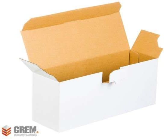 Komplet jednostronnie białych kartonów fasonowych - 20 szt. Wymiary wewnętrzne: 279x88x109mm (długość x szerokość x wysokość) Opakowanie wykonane jest z tektury falistej 3-warstwowej, fala E 370 g/m2