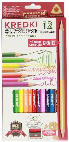 Kredki trójkątne + złota srebrna 12 kolorów Penword Chorzów