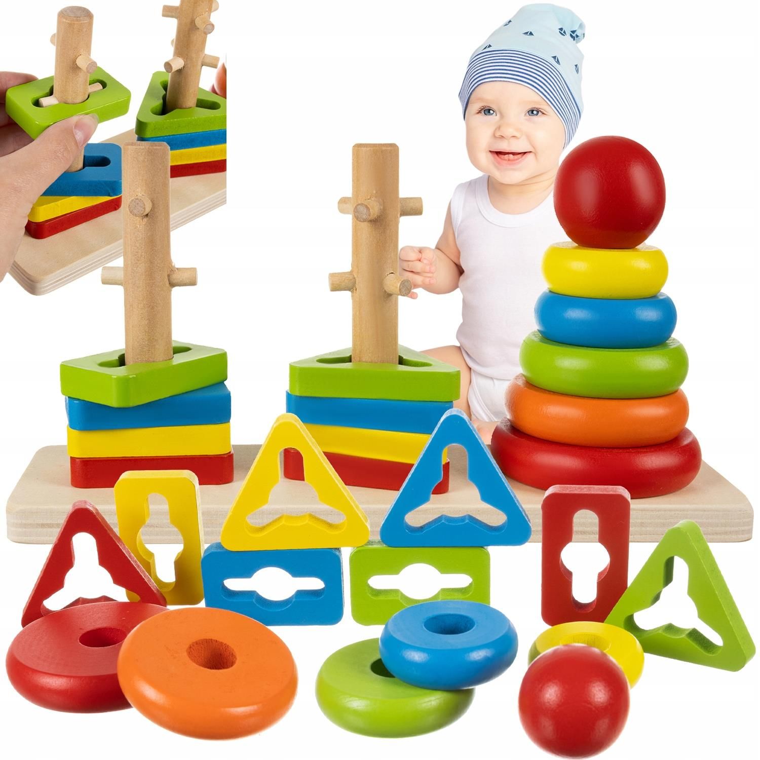 Sorter- układanka drewniana Kruzzel 19870 Kruzzel SORTER - UKŁADANKA DREWNIANA ĆWICZY MAŁE RĄCZKI – zabawa z sorterem doskonale ćwiczy rączki najmłodszych i pomaga w rozwijaniu ich zdolności motorycznych. Klocków nie wystarczy dopasować do odpowiedniej wierzy – trzeba jeszcze nimi manipulować, by przeszły przez wystające na wieżach przeszkody. BAWI I ROZWIJA – kolorowy sorter pobudza wyobraźnię oraz kreatywność. Zabawa z dopasowaniem klocków doskonale pomaga ćwiczyć zmysł koncentracji i zdolność logicznego myślenia. To świetny sposób również na ćwiczenie cierpliwości, koncentracji i pamięci. TRWAŁA – zabawki drewniane są wyjątkowo trwałe i odporne na uszkodzenia, dzięki czemu posłużą latami w idealnym stanie. To zabawka, która z powodzeniem posłuży nie tylko jednemu dziecku, ale i całym pokoleniom. POZNAJ 3 KSZTAŁTY – sorter posiada 3 kształty: koło, trójkąt i prostokąt. Te podstawowe kształty dziecko utrwala od małego poprzez zabawę sorterem. SPECYFIKACJA: materiał: drewno; wiek: 3+; kolor: wielokolorowy; wymiary: 7/22,5/11,5cm; waga: 0,282kg; waga w opakowaniu: 0,35kg. SPECYFIKACJA: materiał: drewno wiek: 3+ kolor: wielokolorowa wymiary: 7/22,5/11,5cm; waga: 0,282kg waga w opakowaniu: 0,35kg W ZESTAWIE: podstawa 4 prostokąty 4 trójkąty 5 pierścieni 1 kulka
