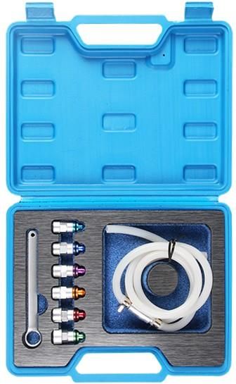 Zestaw kluczy do odpowietrzników hamulcowych 9el Zestaw kluczy do odpowietrzników hamulcowych 9 elementów. Klucz wymienny przelotowy Rozmiary adapterów 7/8/9/10/11 /12 mm - w kolorze. Wąż silikonowy 1,2 mm i zawór zwrotny. Idealny do odpowietrzania układu hamulcowego i sprzęgła hydraulicznego.