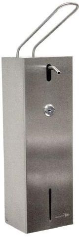 Dozownik na płyn dezynfekujący z ramieniem dozującym - 1 l Kod: ST88S Opis Stalowy dozownik do różnego rodzaju płynów dezynfekujących z ramieniem dozującym, które służy do zminimalizowania kontaktu z dozownikiem i tym samym chroni przed zakażeniami. Prezentowane urządzenie to maksimum higieny, co jest szczególnie ważne w miejscach związanych z sektorem medycznym i lokalami gastronomicznymi. Dozownik nie wymaga korzystania z konkretnych, dedykowanych wkładów, zamiast tego wyposażony został w zbiornik o pojemności 1 l do którego możemy w prosty sposób dolać dowolny środek dezynfekujący czy mydło w płynie. Sprawdza się perfekcyjne z dużymi kanistrami, które możemy kupić na zapas i używać przez długi czas. Prezentowany dozownik zaprojektowano i wykonano w trosce o zapewnienie wysokiej higieny i wygody pracy. Charakteryzuje się takimi praktycznymi właściwościami jak np.: Wytrzymała obudowa ze stali nierdzewnej Zamykany na kluczyk Szybka do monitorowania ilości płynu Możliwość dolania dowolnego płynu do dezynfekcji Szczelność = sterylność Ramię do dozowania łokciem = zmaksymalizowanie higieny Sprawdza się perfekcyjnie jako element stacji do dezynfekcji. Stanowi bardzo dobry wybór w miejscach gdzie niezbędne jest utrzymanie sterylności, np. w przychodniach lekarskich, szpitalach i innych placówkach sektora medycznego. Oprócz tego polecany jest także w miejscach związanych z gastronomią i przemysłem spożywczym, np. w halach produkcyjnych, restauracjach czy barach. Zastosowanie Dozownik jest kompatybilny z każdym środkiem do dezynfekcji lub mydłem w płynie, które należy po prostu wlać do zbiornika wewnątrz dozownika. Parametry Materiał wykonania: Stal nierdzewna Pojemność zbiornika: 1 l Wysokość: 30,9 cm Szerokość: 10,3 cm Głębokość: 8,2 cm Kolor: srebrny
