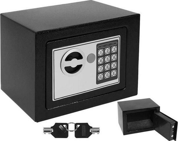 SEJF Z SZYFREM PODWÓJNE ZABEZPIECZENIE ? elektroniczne szyfrowanie oraz awaryjne otwieranie poprzez tradycyjny zamek na klucz gwarantują wysoką ochronę dostępu. Zamek można wielokrotnie programować, 3-8 cyfrowym kodem dostępu. Po trzykrotnie błędnym wpisaniu kodu następuje blokada 30 sekundowa, jest ona sygnalizowana w sposób świetlny oraz dźwiękowy. Jeśli baterię w sejfie będą słabe sejf również będzie sygnalizował dźwiękowo. GWARANCJA BEZPIECZEŃSTWA ? grube ściany oraz solidne drzwi zabezpieczają przed kradzieżą. Jest to doskonałe rozwiązanie dla przechowywania cennych, wartościowych przedmiotów we własnym domu, biurze lub w innym miejscu, gdzie istotne jest zabezpieczenie kosztowności oraz dokumentów. Sejf sprawdzi się także w hotelowym pokoju, gdzie zapewni spokój przebywających w nim gości, którzy będą mogli bezpiecznie zdeponować w nim nie tylko środki płatności, ale również dokumenty podróżne. MOŻLIWOŚĆ ZAWIESZENIA - sejf posiada możliwość przymocowania do ściany, czy też szafy. W zestawie znajdują się 2 kołki montażowe, które umożliwią bezpieczny i trwały montaż. WKŁADKA ? pozwala na ochronę biżuterii bądź innych kosztowności, które nie są narażone na obicia i zarysowania. Wymiary przestrzeni wewnątrz sejfu sprawiają, że zmieszczą się w nim arkusze o maksymalnym rozmiarze A5 oraz wszelkiego rodzaju drobne przedmioty o dużej wartości. SPECYFIKACJA - kolor: czarny; materiał: stal; zasilanie: 4x bateria AA (w zestawie); wymiary (dł/szer/wys): 23/17,5/17cm; waga: 2,5kg; waga z opakowaniem: 2,7kg. SPECYFIKACJA kolor: czarny materiał: stal zasilanie: 4x bateria AA (w zestawie) wymiary (dł/szer/wys): 23/17,5/17cm waga: 2,5kg waga z opakowaniem: 2,7kg W ZESTAWIE sejf elektroniczny 4x baterie AA 2 kluczyki 2 kołki montażowe wraz ze śrubkami Sejf elektroniczny to doskonałe rozwiązanie dla przechowywania cennych, wartościowych przedmiotów we własnym domu, biurze lub w innym miejscu, gdzie istotne jest zabezpieczenie kosztowności oraz dokumentów. Sejf sprawdzi się także w hotelowym pokoju, gdzie zapewni spokój przebywających w nim gości, którzy będą mogli bezpiecznie zdeponować w nim nie tylko środki płatności, ale również dokumenty podróżne. Solidnie wykonanie oraz możliwość ustawienia własnego szyfru daje pewność i bezpieczeństwo oraz gwarantuje, że nikt poza nami nie będzie miał dostępu do zawartości. Sejf jest trwały i odporny na uszkodzenia oraz stosunkowo ciężki. W związku z tym maleje ryzyko kradzieży całej skrytki i wyniesienia jej niepostrzeżenie na zewnątrz obiektu bądź pomieszczenia, w którym się znajduje. Zamknięcie drzwi poprzez grube rygle skutecznie spełnia dodatkową rolę zabezpieczającą, uniemożliwiając ich sforsowanie. Sejf zapewnia możliwość trzymania wszelkich ważnych rzeczy, m.in. pieniędzy, biżuterii, dokumentów bądź małego sprzętu elektronicznego, a także nośników pamięci z wrażliwymi danymi. Wymiary przestrzeni wewnątrz sejfu sprawiają, że zmieszczą się w nim arkusze o maksymalnym rozmiarze A5 oraz wszelkiego rodzaju drobne przedmioty o dużej wartości. Dno sejfu można wyłożyć znajdującą się w zestawie, materiałową podkładką. Uchroni ona biżuterię bądź inne kosztowności przed przypadkowym uszkodzeniem lub zarysowaniami. Na froncie drzwi znajduje się elektroniczny panel sterujący. Jest on zasilany przez 4 baterie (dołączone w zestawie). Mamy również dostęp do tradycyjnego zamka na klucz. Umożliwia on awaryjne otwarcie sejfu w przypadku zapomnienia kodu. Klucz powinien być zatem trzymany w ukryciu, z daleka od sejfu, aby nie umożliwiać dostępu osobom niepowołanym. Na drzwiach zamontowane jest pokrętło służące do otwierania drzwi sejfu. Znajdujące się nad panelem diody sygnalizujące informują o stanie baterii, a także o tym, czy poprawnie wykonujemy czynności. W momencie konieczności wymiany baterii, dioda po otwarciu sejfu zaświeci się. Za pomocą panelu można ustawić i zmieniać swój osobisty kod dostępu. Jeżeli hasło dostępu zostanie wpisane błędnie trzykrotnie, to rozlegnie się alarmujący sygnał dźwiękowy, a klawiatura zostanie zablokowana na 30 sekund. W zestawie dołączone są także kołki montażowe, które umożliwiają zamocowanie sejfu do ściany, bądź szafy przez znajdujące się w tylnej części otwory. Inwestycja w produkt zaprojektowany z myślą o tym, aby zmniejszyć ryzyko kradzieży wartościowych przedmiotów bądź tajnych dokumentów, może okazać się kluczowa nie tylko w życiu prywatnym, ale także służbowym. Będzie również oznaką wysokiej jakości obsługi gości hotelowych.