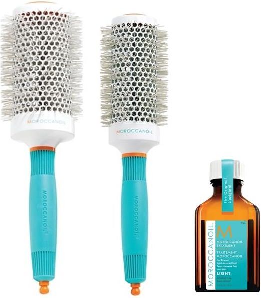 W zestawie znajduję się: Ceramiczna szczotka 55mm Ceramiczna szczotka 45mm Naturalny olejek arganowy do włosów cienkich i delikatnych 25ml