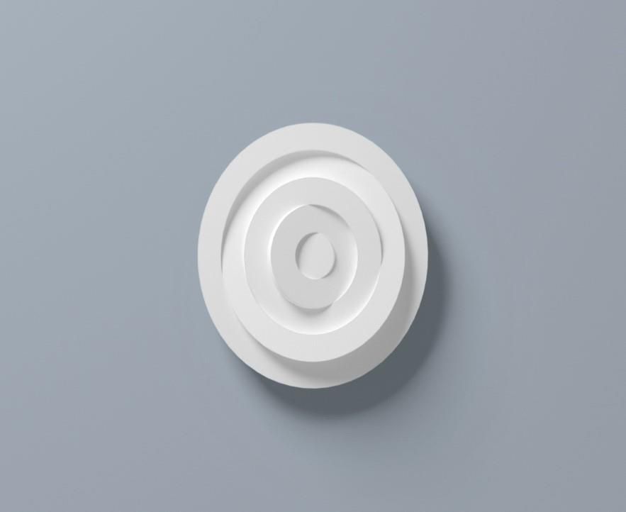 Rozeta NMC Arstyl CR5- Bardzo oryginalna, prosta piękna rozeta z delikatnymi powtarzającymi się zdobieniem wewnątrz, ukazuje coraz to mniejsze wyostrzone krawędzie koła. Daje nam szeroki wachlaż zastosowania we wnętrzu oraz uzyskujemy rewelacyjny efekt 3D co wprowadza "kropkę nad i" w nasze wnętrza. Doskonale sprawdzi się z listwami przypodłogowymi każdego kształtu z uwagi na klasycyzm. Rozety podkreślają pięknie płaszczyzny oraz pozwalają na grę światłem, sprawiają że światło uzyskuje nowy kształt. Stosujemy je aby stworzyć perfekcyjne połączenie żyrandola z sufitem (z tyłu rozet znajduje się miejsce na przewody elektryczne). Grubość rozety to 6cm. Z pomocą rozet możemy również podkreślić pewne płaszczyzny ścian na których nam zależy, możemy wprowadzić podziały stosując od zewnątrz profile dekoracyjne tworząc tzw.ekrany i wewnątrz nich umieszczamy rozetę. Najlepiej sprawdzą się tutaj proste klasyczne modele np. R07,R08, R09 czy R40 lub R15. Cecha produktu: Element lekki, wykonany z polisterynu ekstrudowanego łatwy w montażu. Gładka poliuretanowa rozeta, zabezpieczona przed żółknięciem w trakcie użytkowania poprzez zastosowanie niewidocznej folii syntetycznej na warstwie produktu. Rozeta o gładkiej strukturze, koloru białego została pokryta fabrycznie farbą podkładową. Produkt wolny od freonu i nietoksyczny. Element został pokryty fabrycznie farbą podkładową jednak po zamontowaniu zalecamy pomalowanie sztukaterii farbami akrylowymi lub dyspersyjnymi celem ekskluzywnego wykończenia produktu.